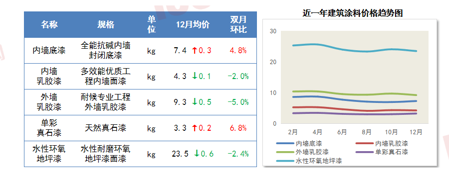 12月22日至23日,内墙、外墙乳胶漆、水性环氧地坪漆环比小幅下跌2.0%-5.0%?